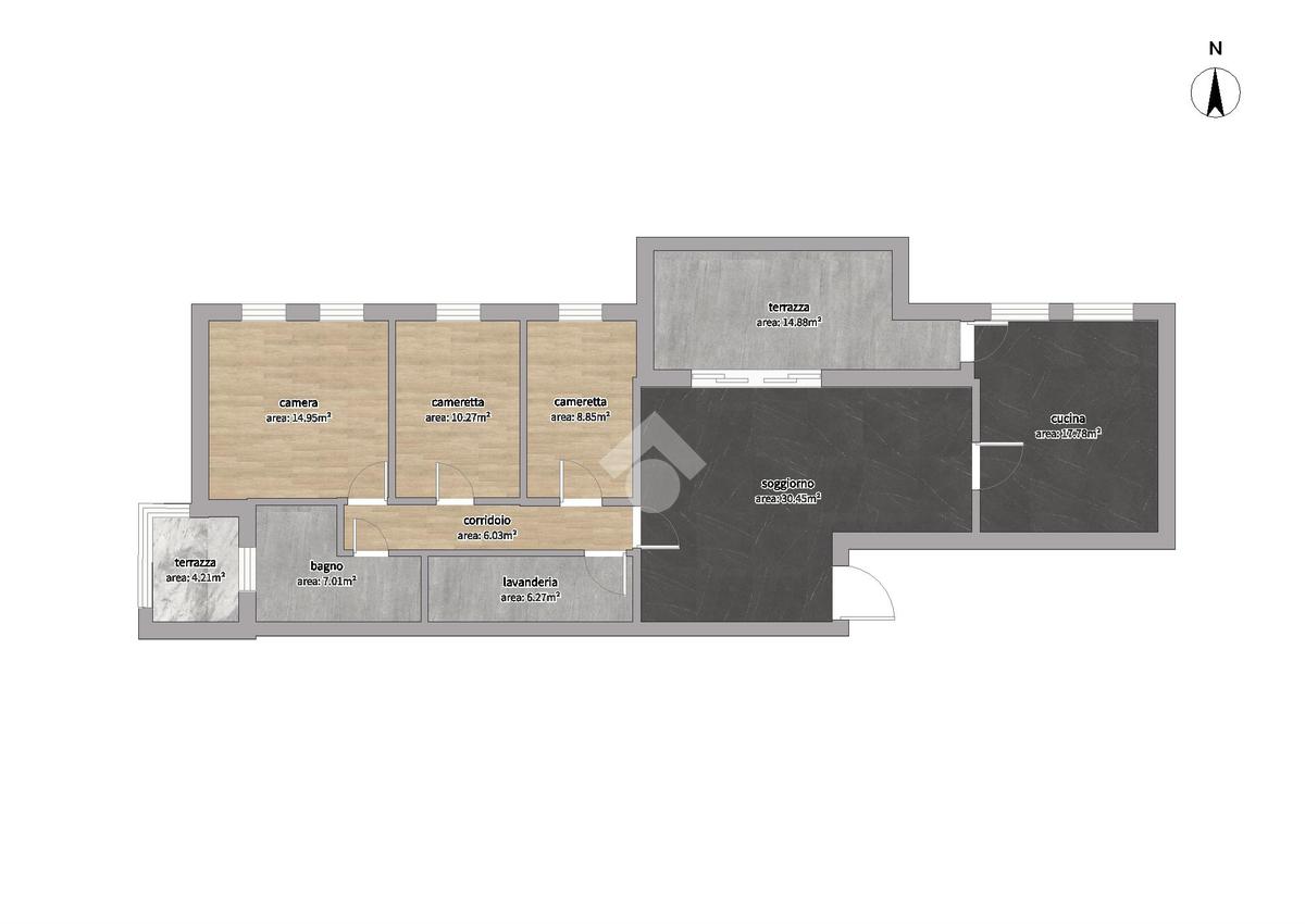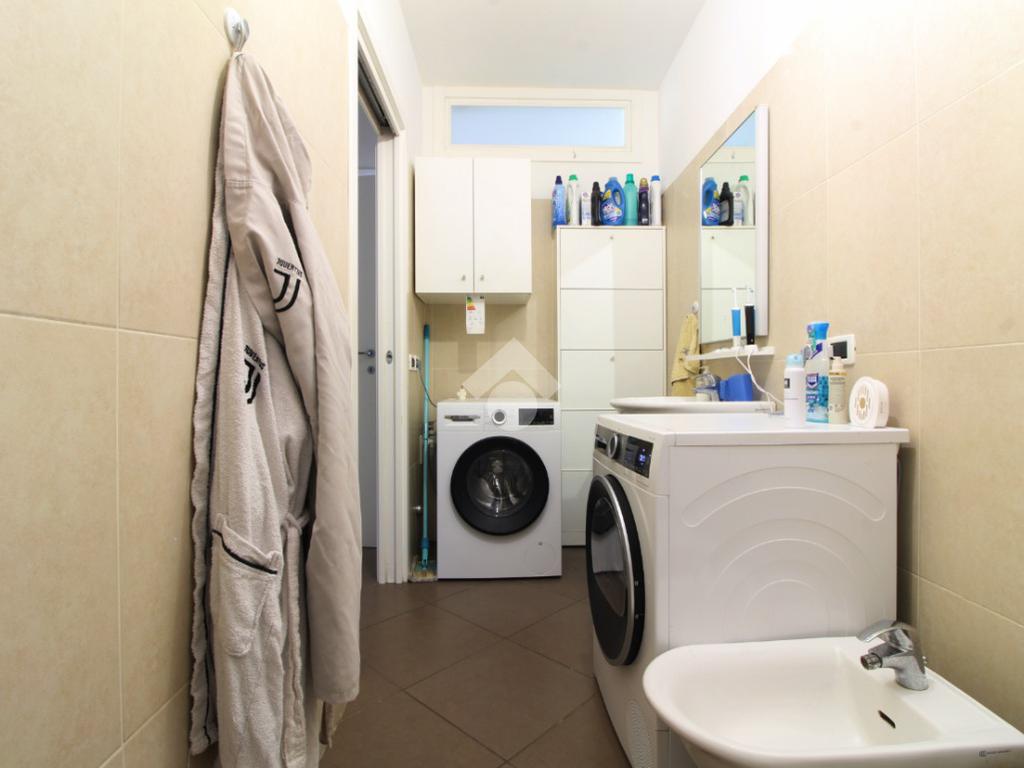 Attraverso il corridoio si accede alla zona notte, dove troviamo un primo bagno/lavanderia con comoda doccia, un secondo bagno con vasca finestrato con affaccio su una piccola terrazzina di disimpegno, due camere singole e una camera matrimoniale, tutte dotate di grandi finestre a tutta altezza che garantiscono un’ottima illuminazione naturale.