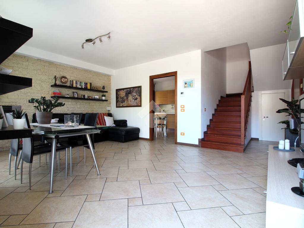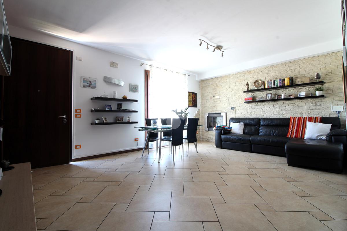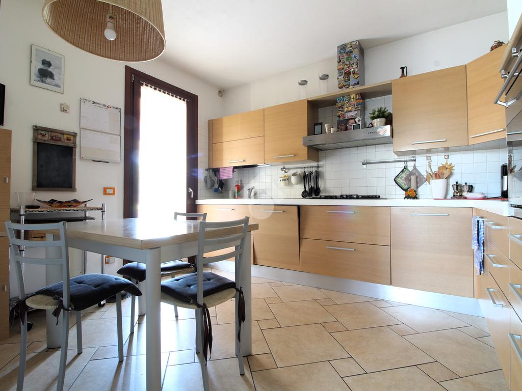Edificata tra il 2003 e il 2005 la casa è disposta su soli due livelli fuori terra, al piano terra l'ingresso ci accoglie nella spaziosa zona giorno dotata di luminoso soggiorno con caminetto e cucina abitabile separata dotata di accesso alla pompeiana esterna; un comodo disimpegno ci porta alla zona di servizio dove troviamo lo spazioso bagno/lavanderia con doccia e il garage.