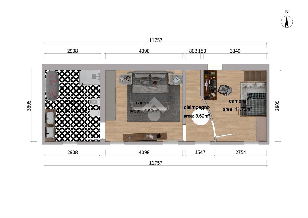 Salendo al primo piano, la zona notte ospita due camere da letto ampie e luminose, progettate per offrire il massimo comfort. La generosa metratura del piano permette di ricavare un ulteriore bagno a servizio della camera padronale.